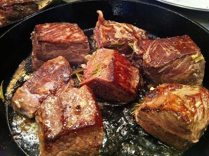 "Ist das Fleisch schon gar?" "Nein, es ist noch ein bisschen roh."